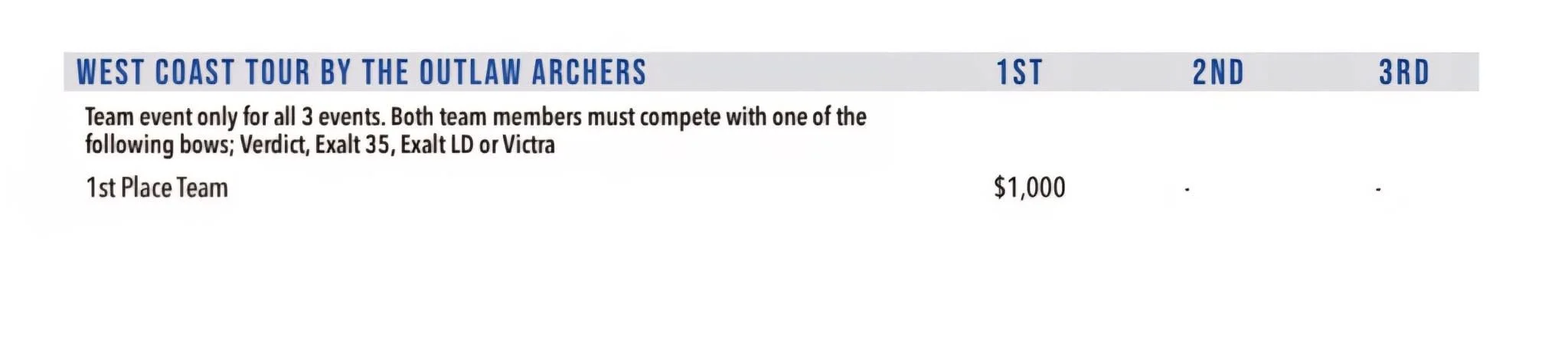 West Coast Archery Shop has announced a $1,000 gift card contingency to first-place teammates who’ve purchased their bows from West Coast Archery Shop and are wearing their logo gear.